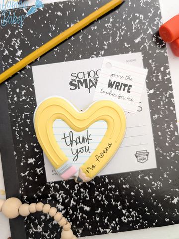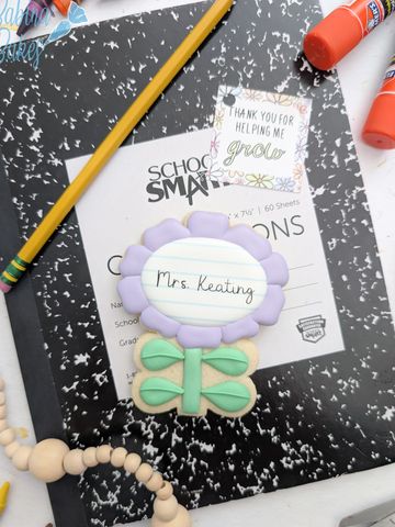 Four inch cookie personalized, heat sealed and topped with a tag and a bow.