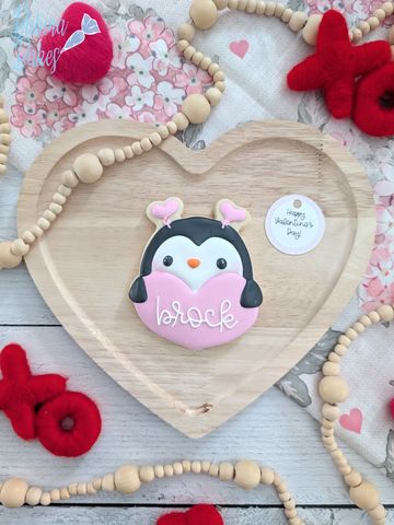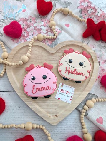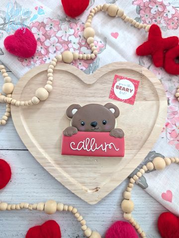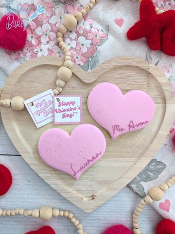 Three inch personalized cookie heat sealed topped with a bow and tag